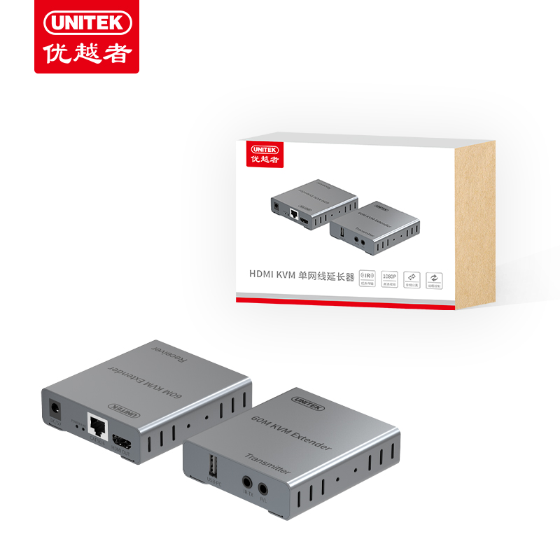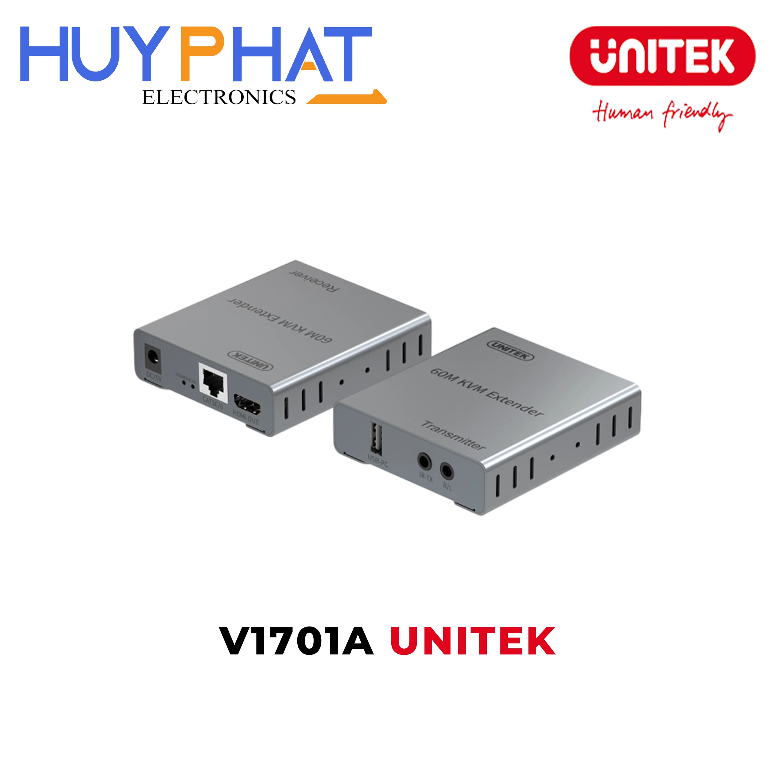 - Bộ mở rộng HDMI KVM UNITEK V1701A cho phép truyền tín hiệu HDMI và điều khiển KVM qua cáp mạng đơn với khoảng cách lên đến 60 mét.