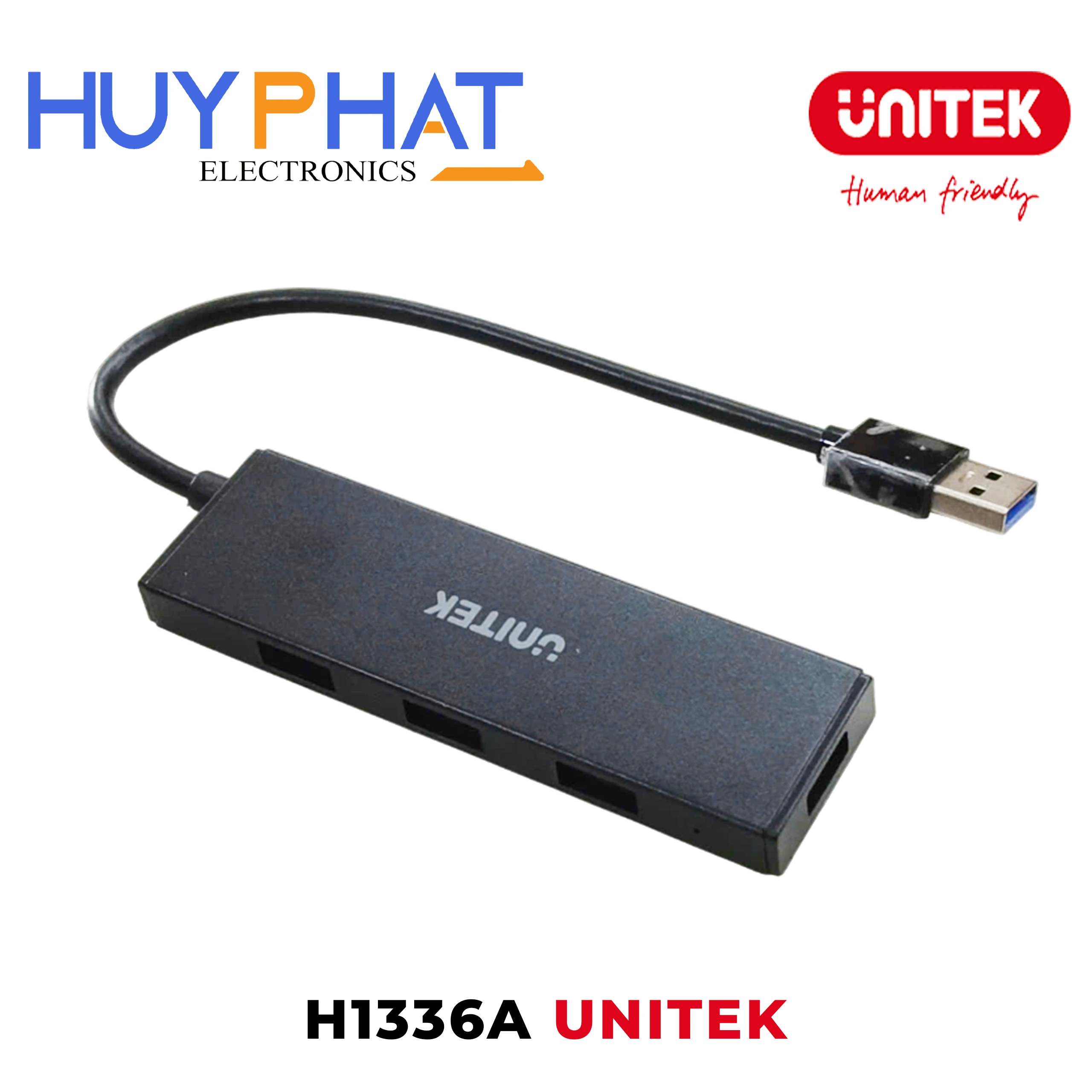 UNITEK H1336A là hub mở rộng 4 cổng USB-A tốc độ cao, hỗ trợ truyền dữ liệu SuperSpeed 5Gbps, giúp kết nối bàn phím, chuột, ổ cứng, USB flash và nhiều thiết bị ngoại vi khác cùng lúc.