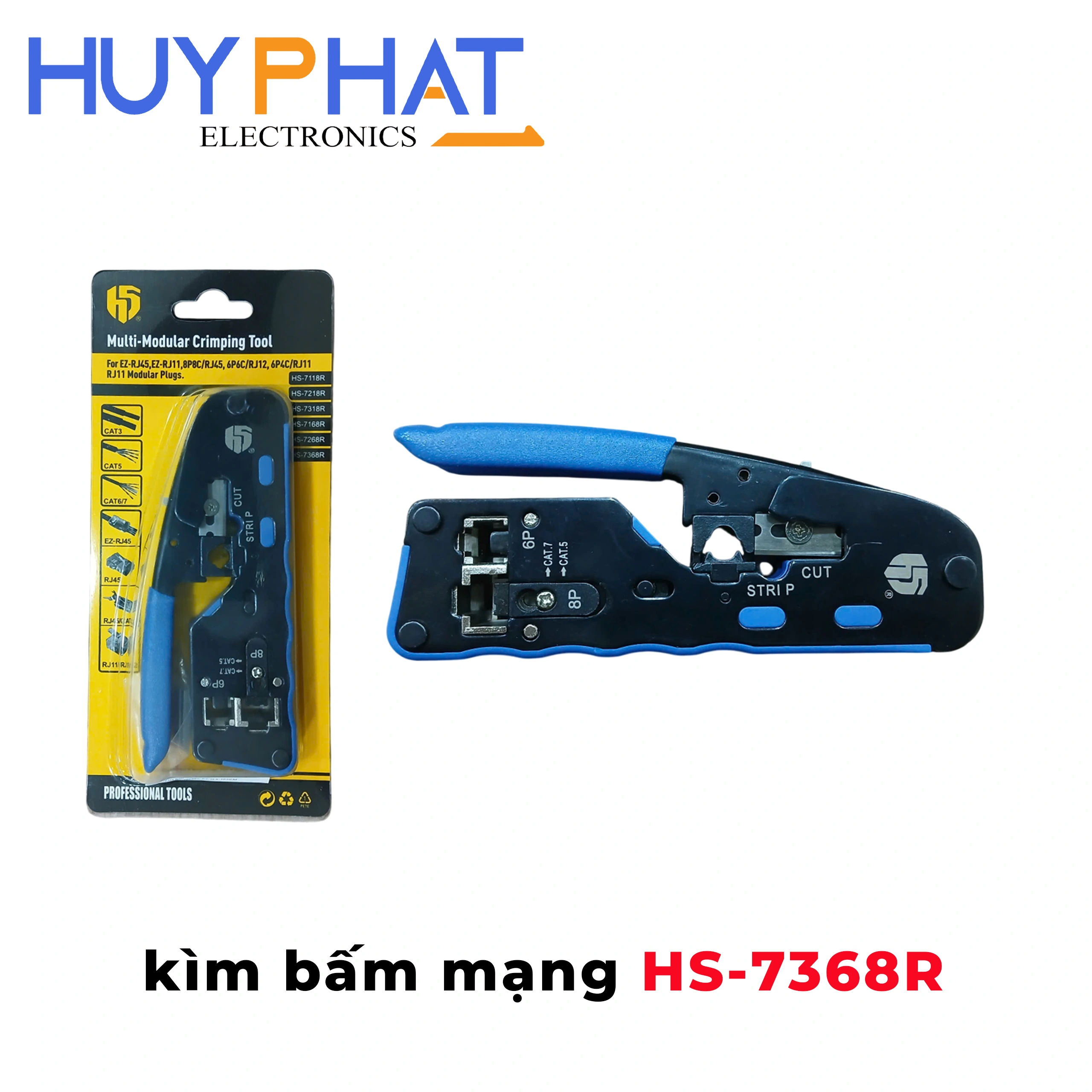 - Kìm mạng HS-7368R là dòng kìm đa năng chuyên dụng cho đầu mạng RJ45, RJ12 và RJ11.
