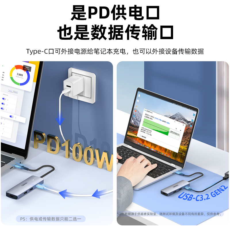 - 1 cổng Type-C hỗ trợ PD 100W và truyền dữ liệu tốc độ cao (10Gbps) – sạc nhanh và truyền dữ liệu cùng lúc.