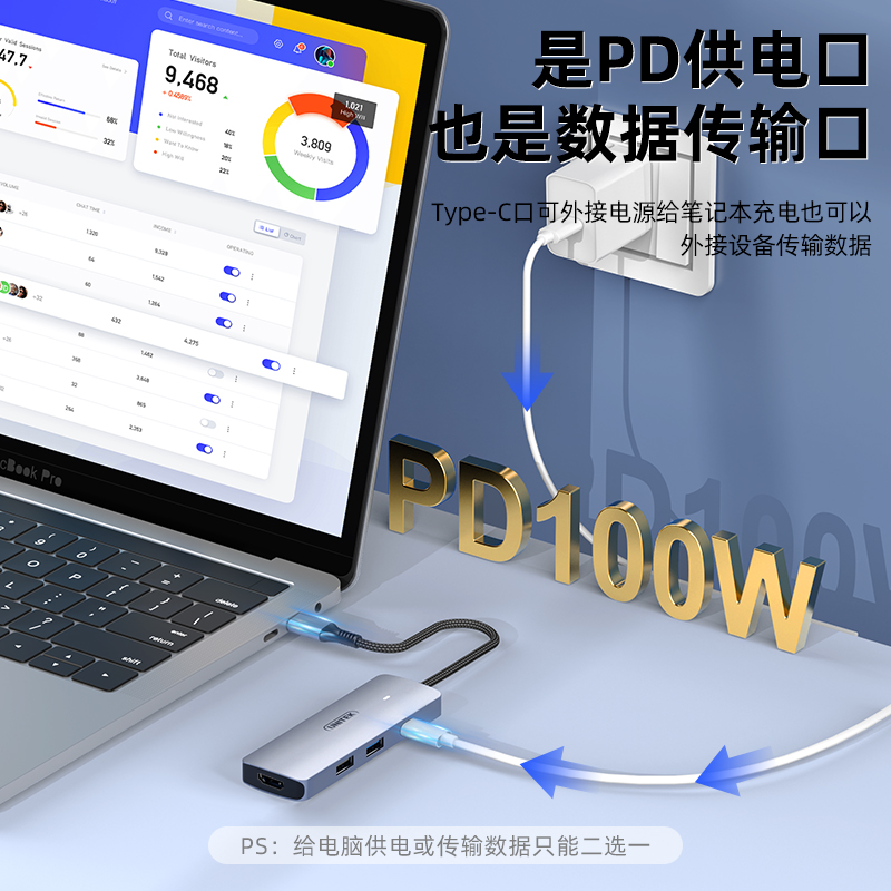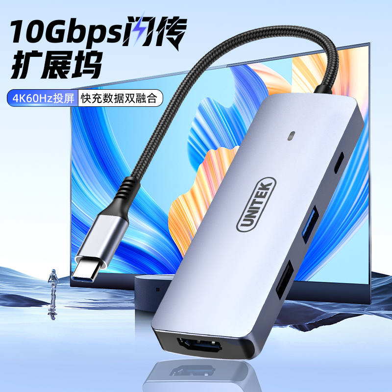 Bộ chuyển đổi 4 cổng Type-C ->USB + HDMI 4K@60Hz + PD100W UNITEK D107B