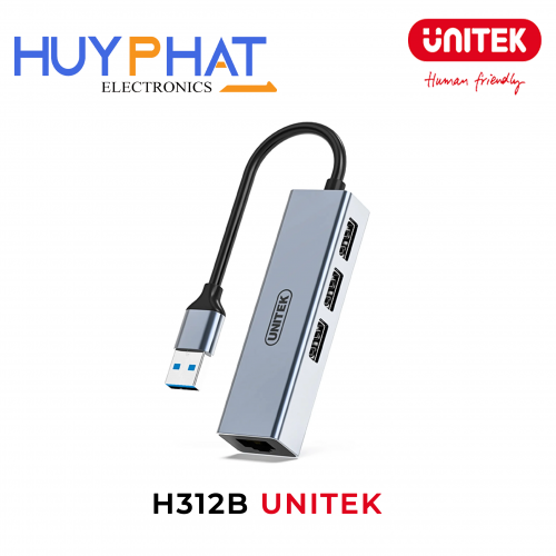 - Bộ chuyển đổi UNITEK H312B là hub mở rộng USB tiện lợi, tích hợp 4 cổng USB 3.0 và 1 cổng LAN Gigabit.