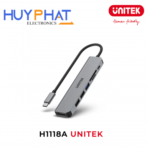 Bộ chuyển đổi 5 cổng Type-C -> HDMI 4K@30Hz + USB3.0 + USB2.0 + CardReader + PD 100W UNITEK H1118A