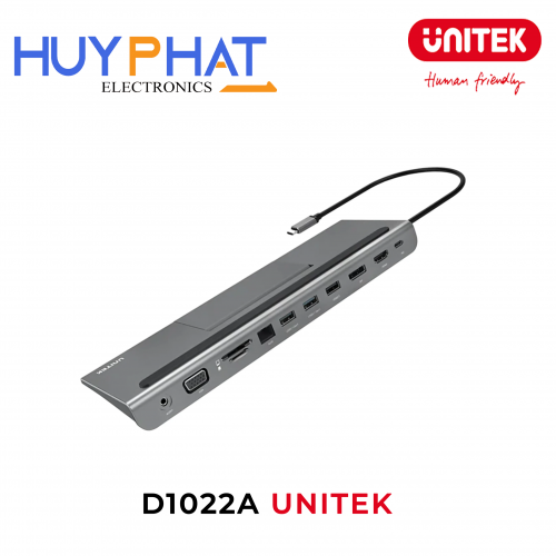 Bộ chuyển đổi 7 cổng Type-C -> USB 3.1 + HDMI 4K@30Hz + DP + VGA + LAN + TF/SD + LAN + PD 100W UNITEK D1022A