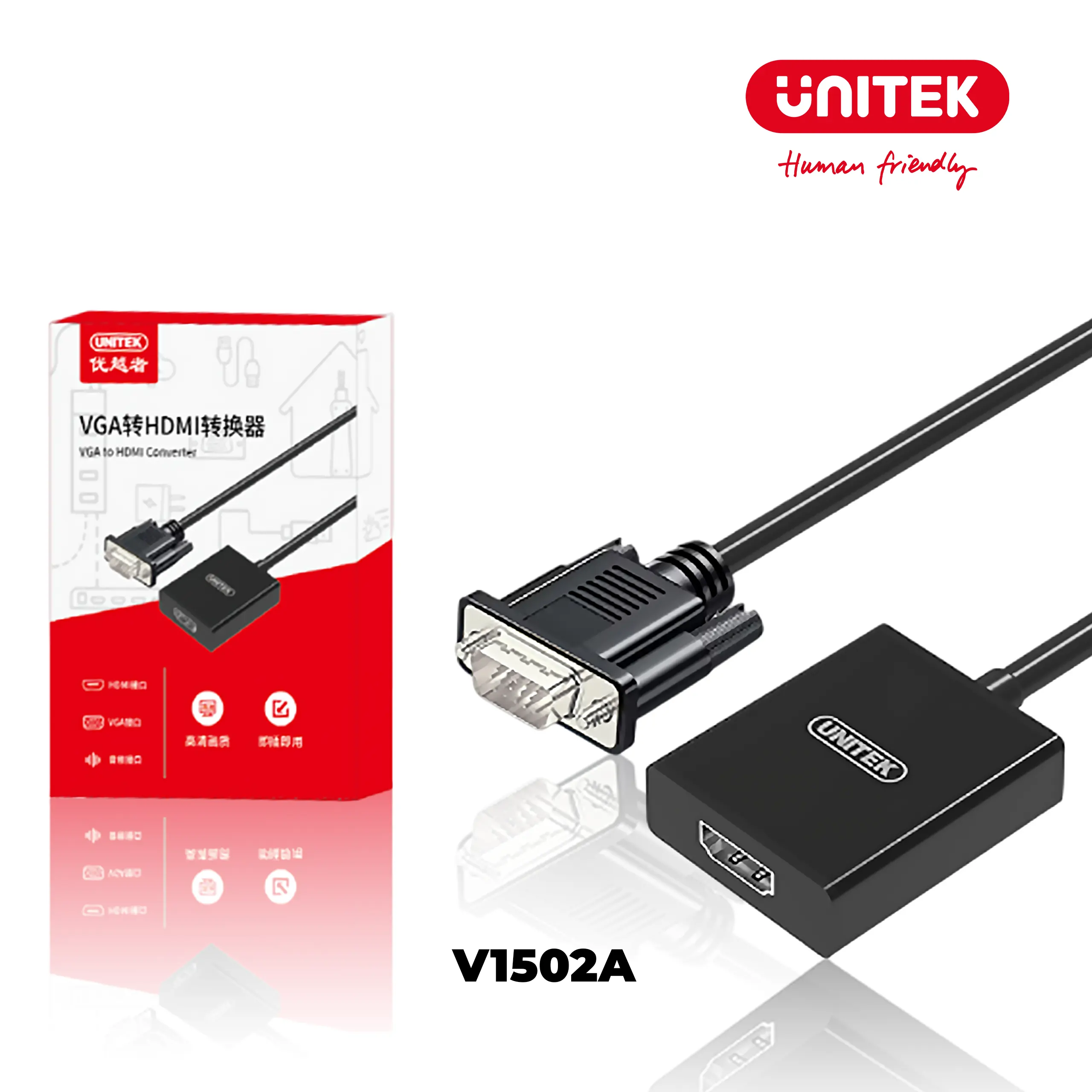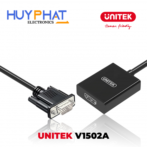 - Bộ chuyển đổi UNITEK V1502A giúp kết nối thiết bị có cổng VGA sang màn hình, TV, máy chiếu với cổng HDMI.