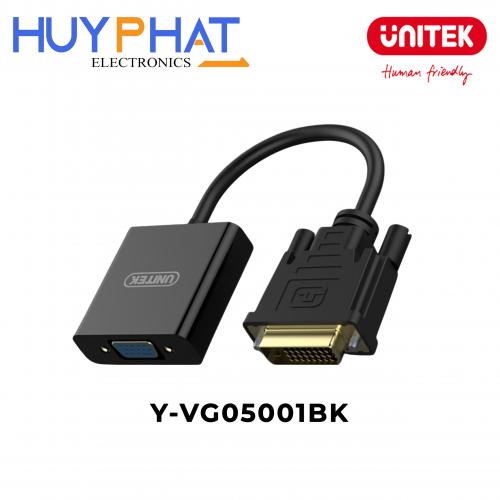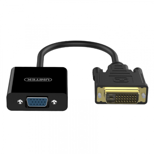 - Cáp chuyển đổi UNITEK Y-VG05001BK cho phép kết nối từ cổng DVI (M) sang thiết bị hiển thị có cổng VGA (F), phù hợp với nhiều loại màn hình, máy chiếu hoặc TV.