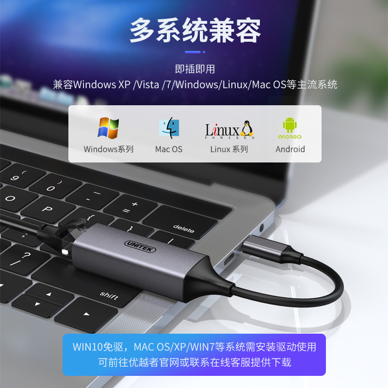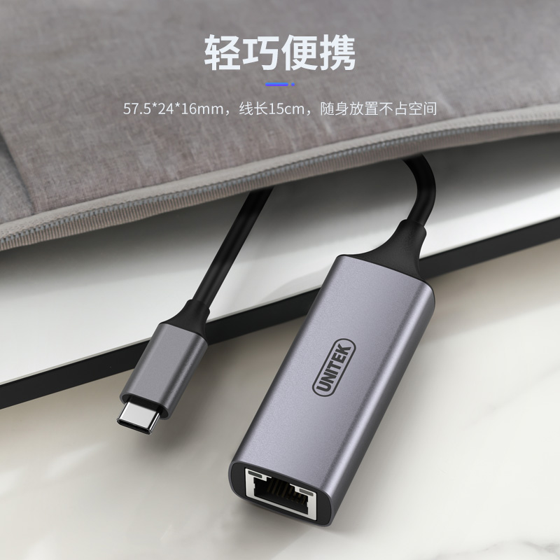 - Bộ chuyển đổi UNITEK U310A cho phép kết nối từ cổng Type-C của thiết bị đến mạng LAN qua cổng RJ45.