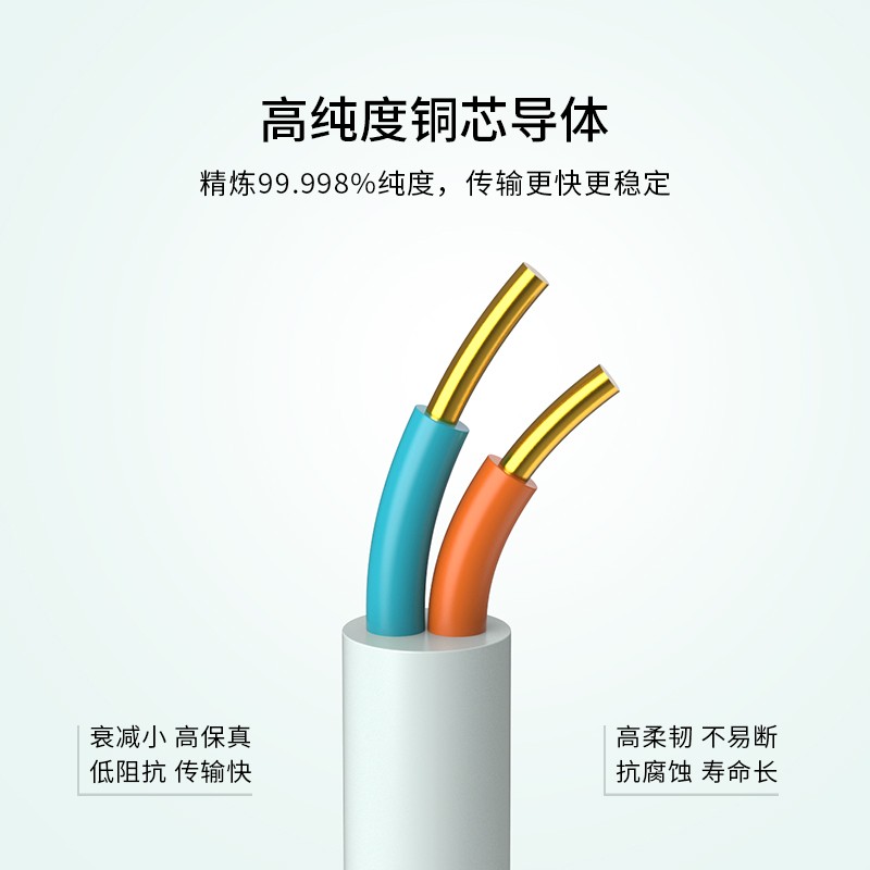 - Lõi đồng tinh khiết OFC (độ tinh khiết 99.998%) giúp truyền tín hiệu rõ ràng, không có nhiễu xuyên âm.