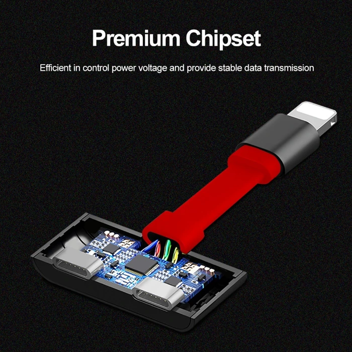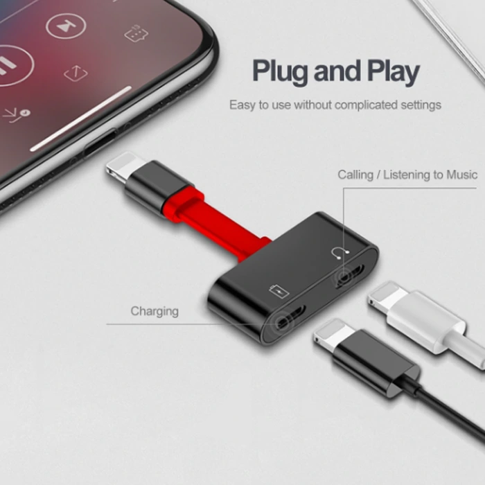 - Đầu vào Lightning (đực) và 2 đầu ra Lightning (cái): 1 cho tai nghe, 1 cho sạc.