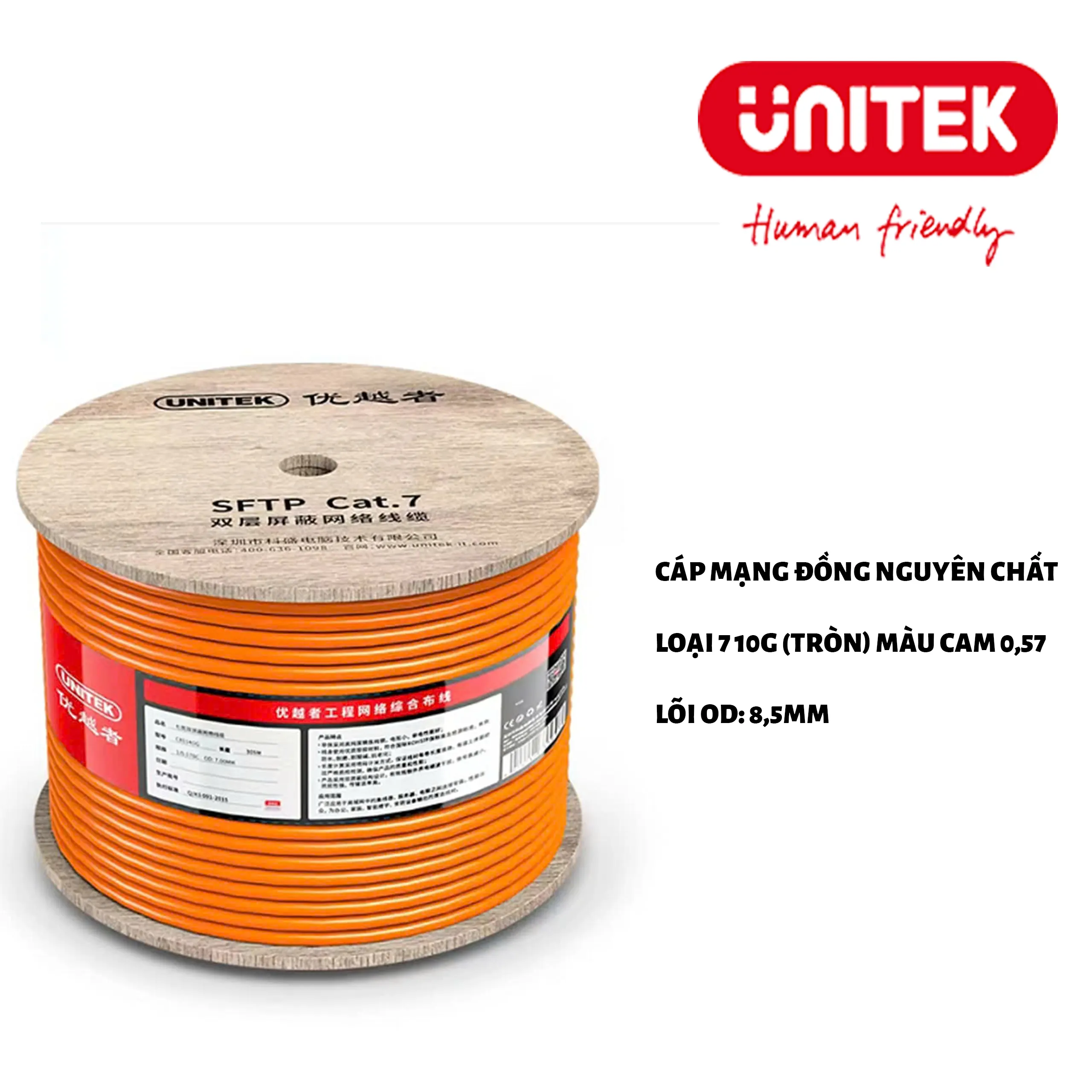 - Cáp mạng UNITEK C8114OG Cat 7 dài 305m, sử dụng lõi đồng nguyên chất, bọc chống nhiễu SFTP.