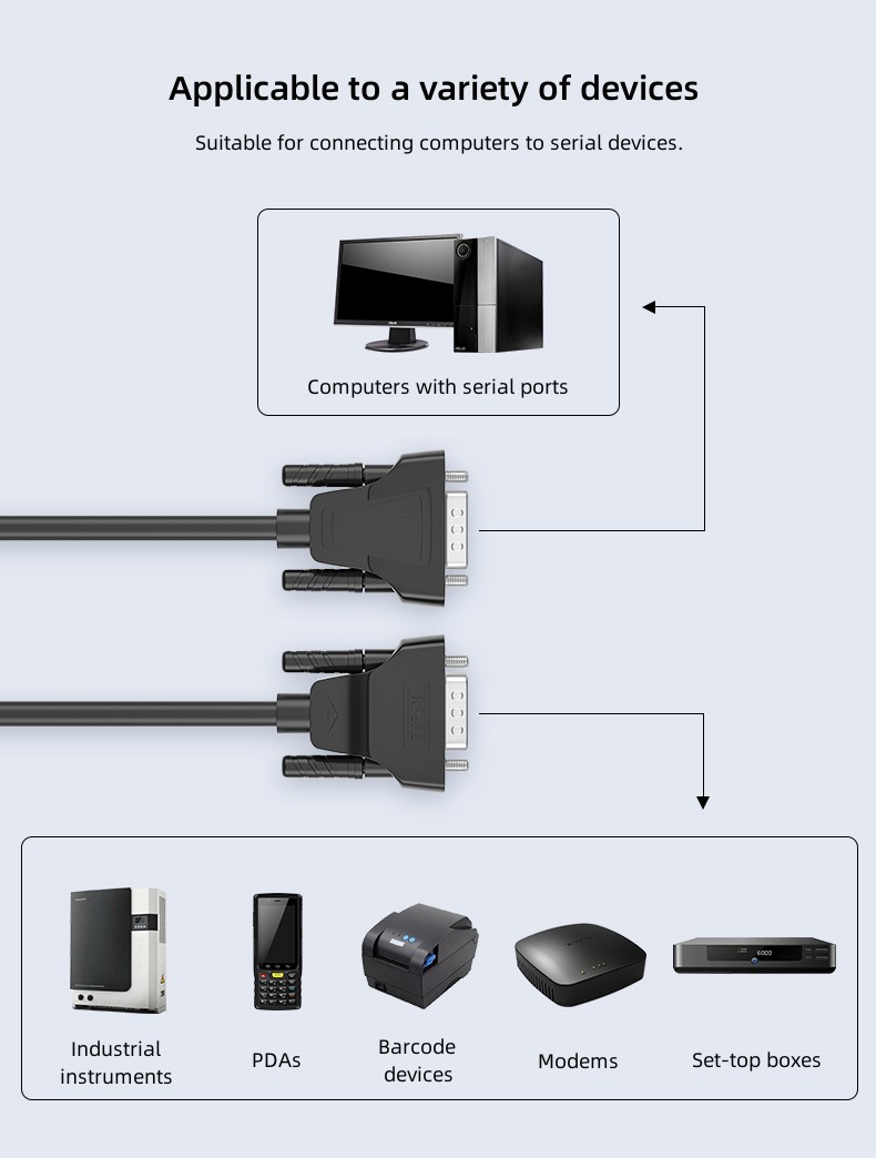 5. Được sử dụng để giao tiếp với máy tính, máy in thuế, máy in, vi điều khiển, camera CCTV, máy mã vạch, cửa an toàn, PDA, MODEM, máy POS, thiết bị công nghiệp và các thiết bị cổng nối tiếp khác.