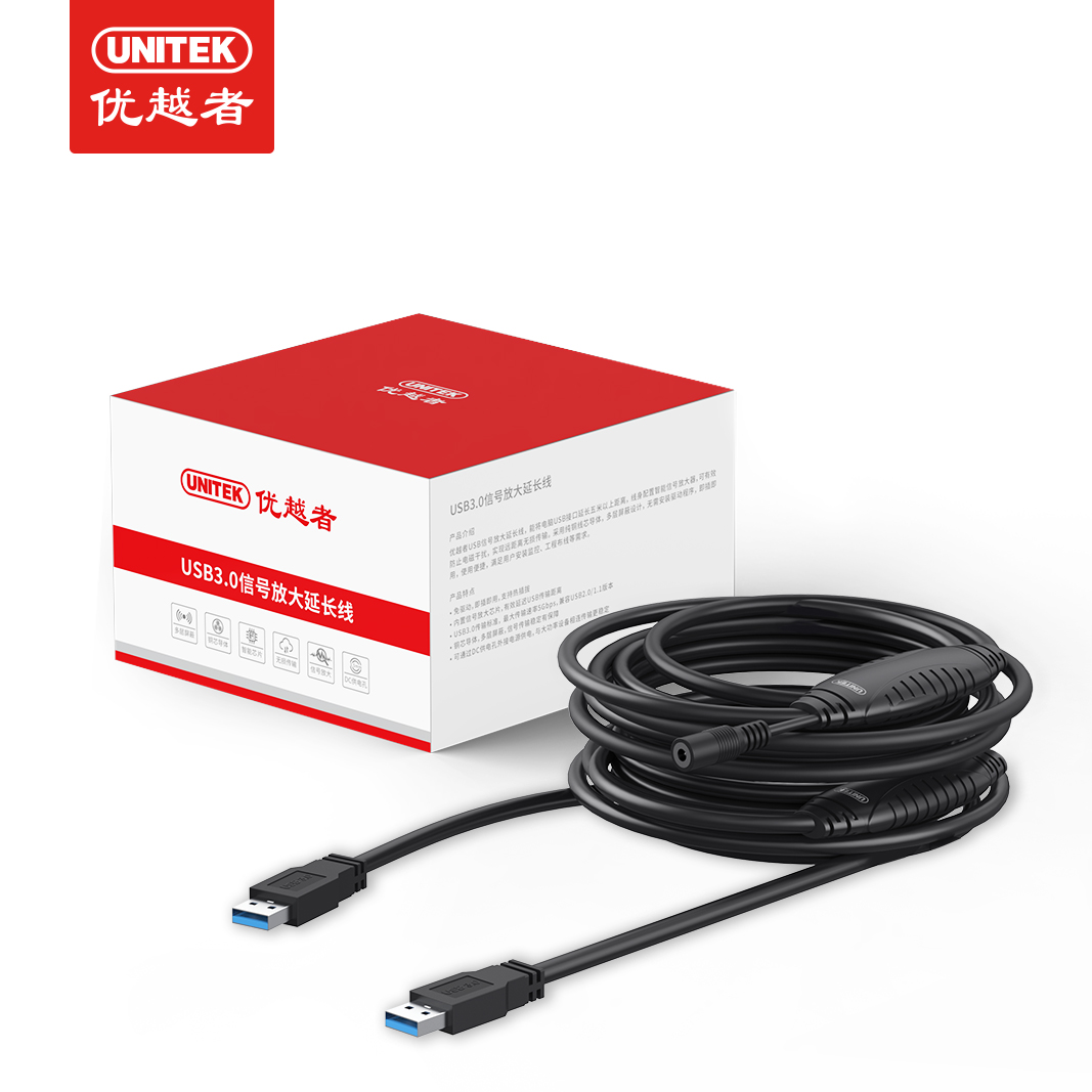 - Cáp USB 3.0 UNITEK U332A hỗ trợ khuếch đại tín hiệu, cho phép mở rộng kết nối USB với chiều dài lên đến 20m.