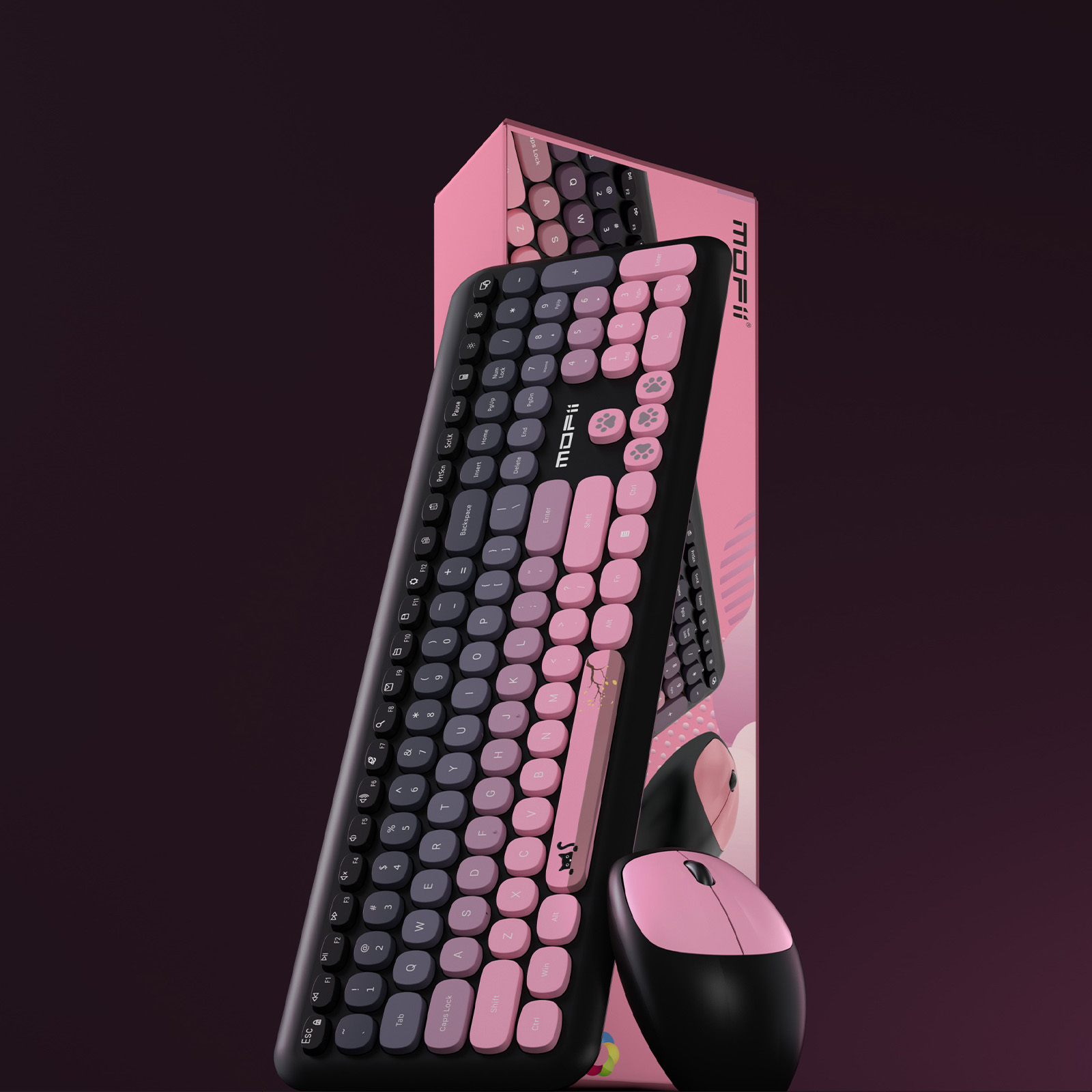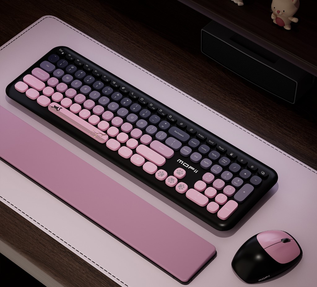 Combo phím chuột không dây 2.4G màu hồng MOFII 666 MIXED