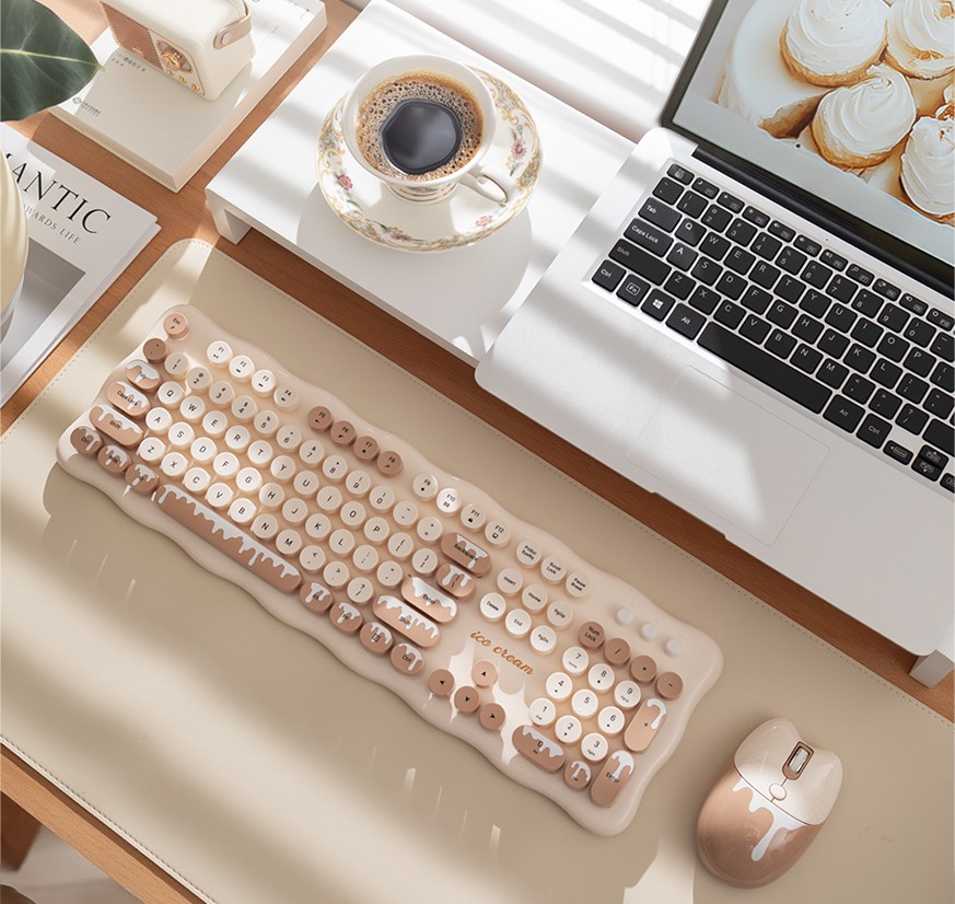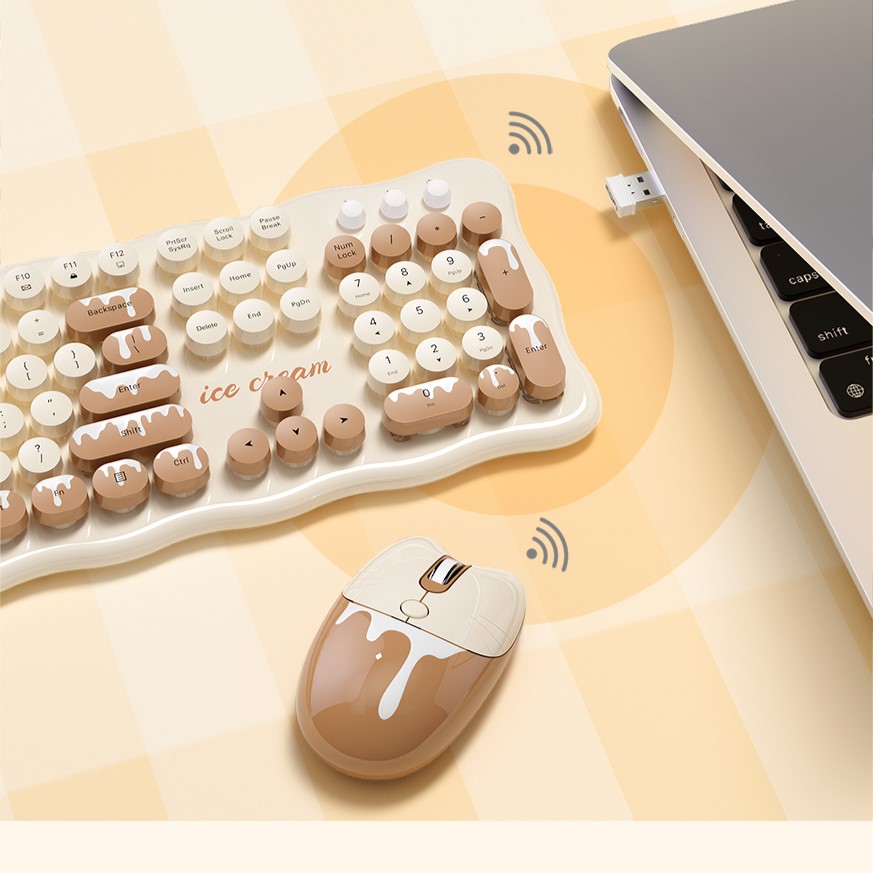 Combo phím chuột không dây 2.4G màu trà sữa MOFII ICE CREAM