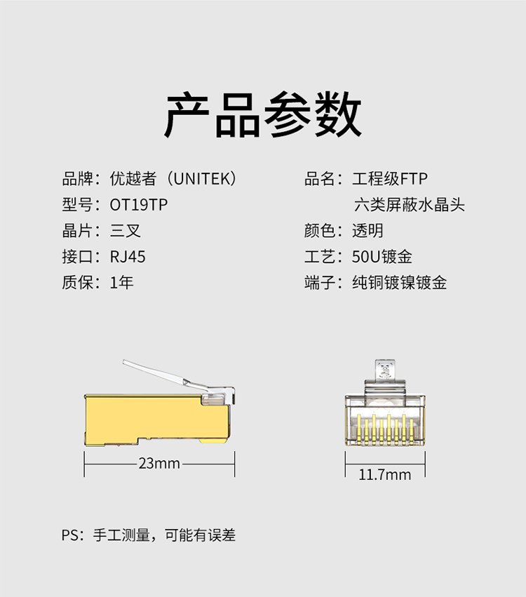- Đầu mạng pha lê UNITEK OT19ATP thuộc chuẩn Cat6, được thiết kế để truyền tín hiệu mạng tốc độ cao ổn định.
