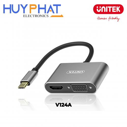 - Bộ chuyển đổi UNITEK V124A cho phép kết nối thiết bị sử dụng cổng USB-C với màn hình hoặc máy chiếu thông qua cổng HDMI hoặc VGA.
