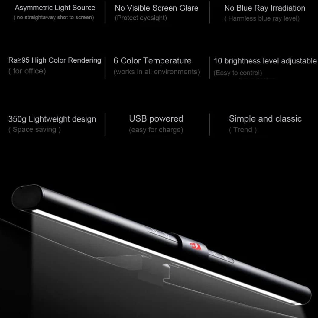 Đèn màn hình Redragon Beryl GML-113 là giải pháp chiếu sáng tiện dụng và hiện đại dành cho dân văn phòng và game thủ thức khuya. Thiết kế bằng nhôm chắc chắn, đèn mang đến sự kết hợp giữa phong cách tối giản và độ bền cao.