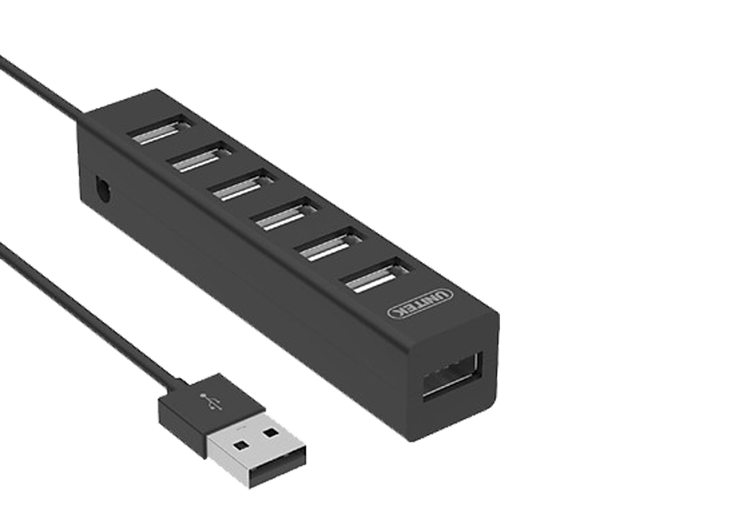 - Hub chia 7 cổng USB2.0 UNITEK Y-2160BK giúp mở rộng từ 1 cổng USB ra 7 cổng, thuận tiện kết nối nhiều thiết bị cùng lúc như chuột, bàn phím, ổ cứng, USB.
