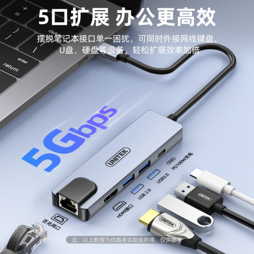 Hub mở rộng USB-C 5-in-1 UNITEK D112D