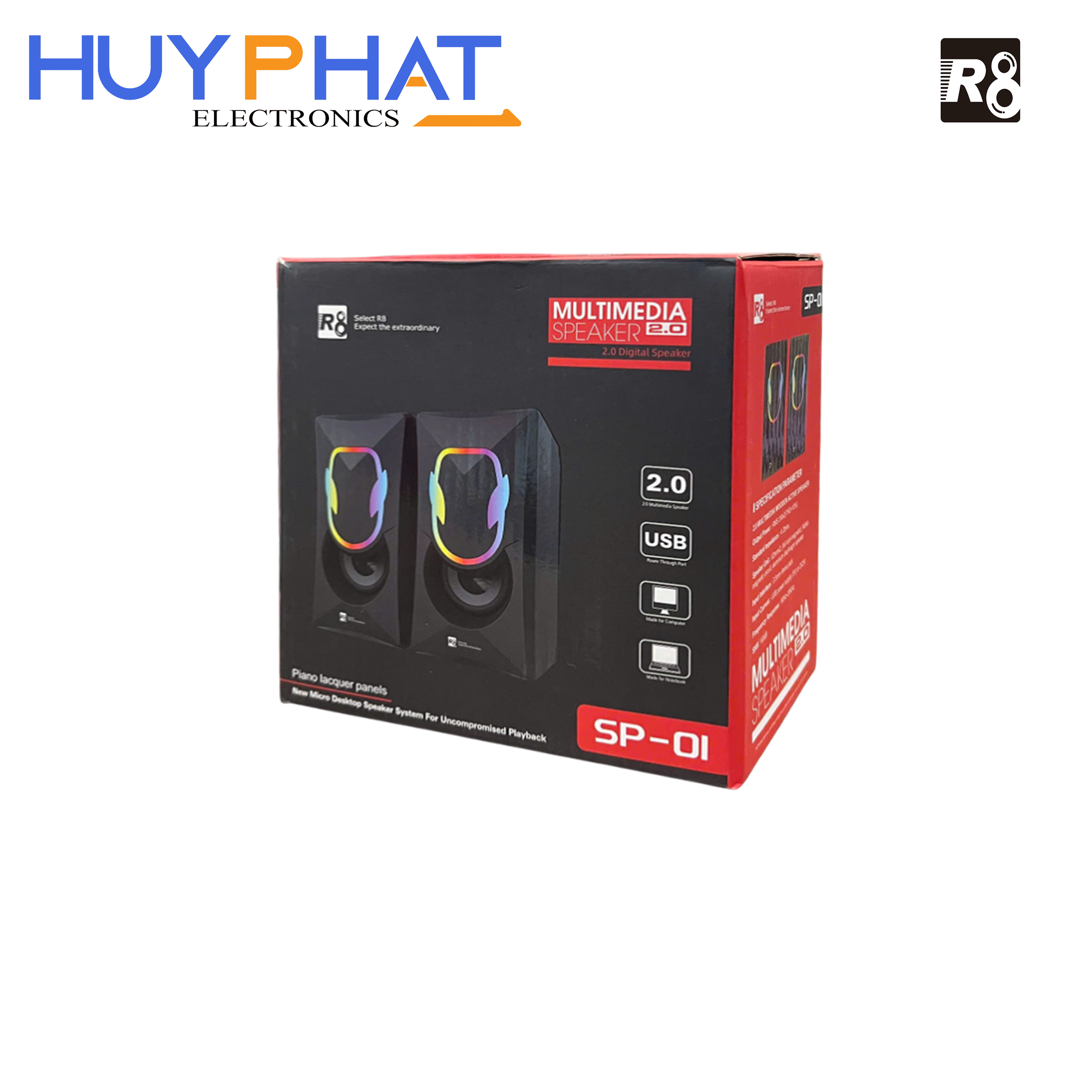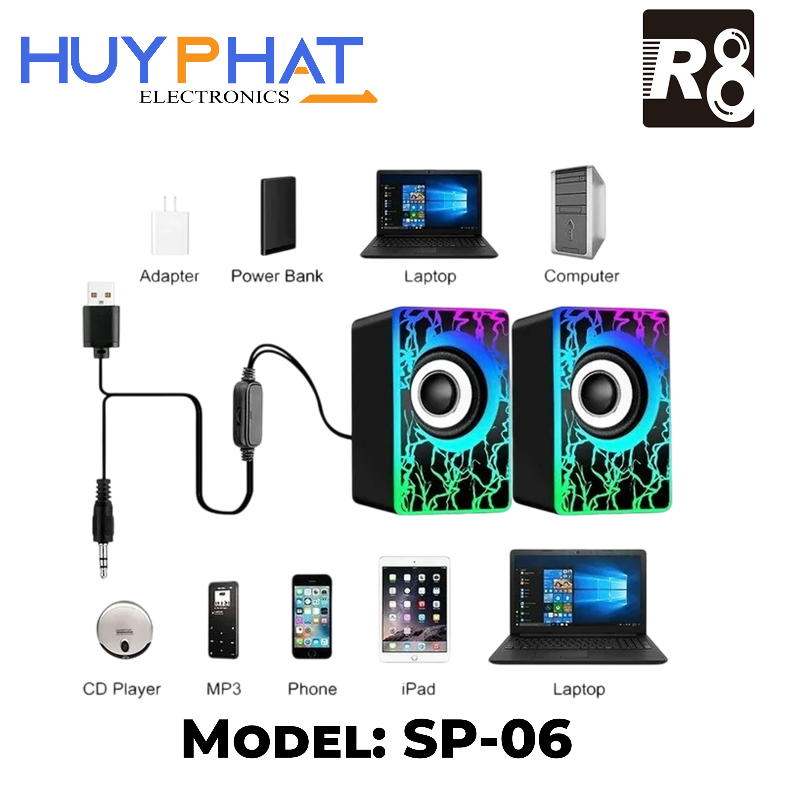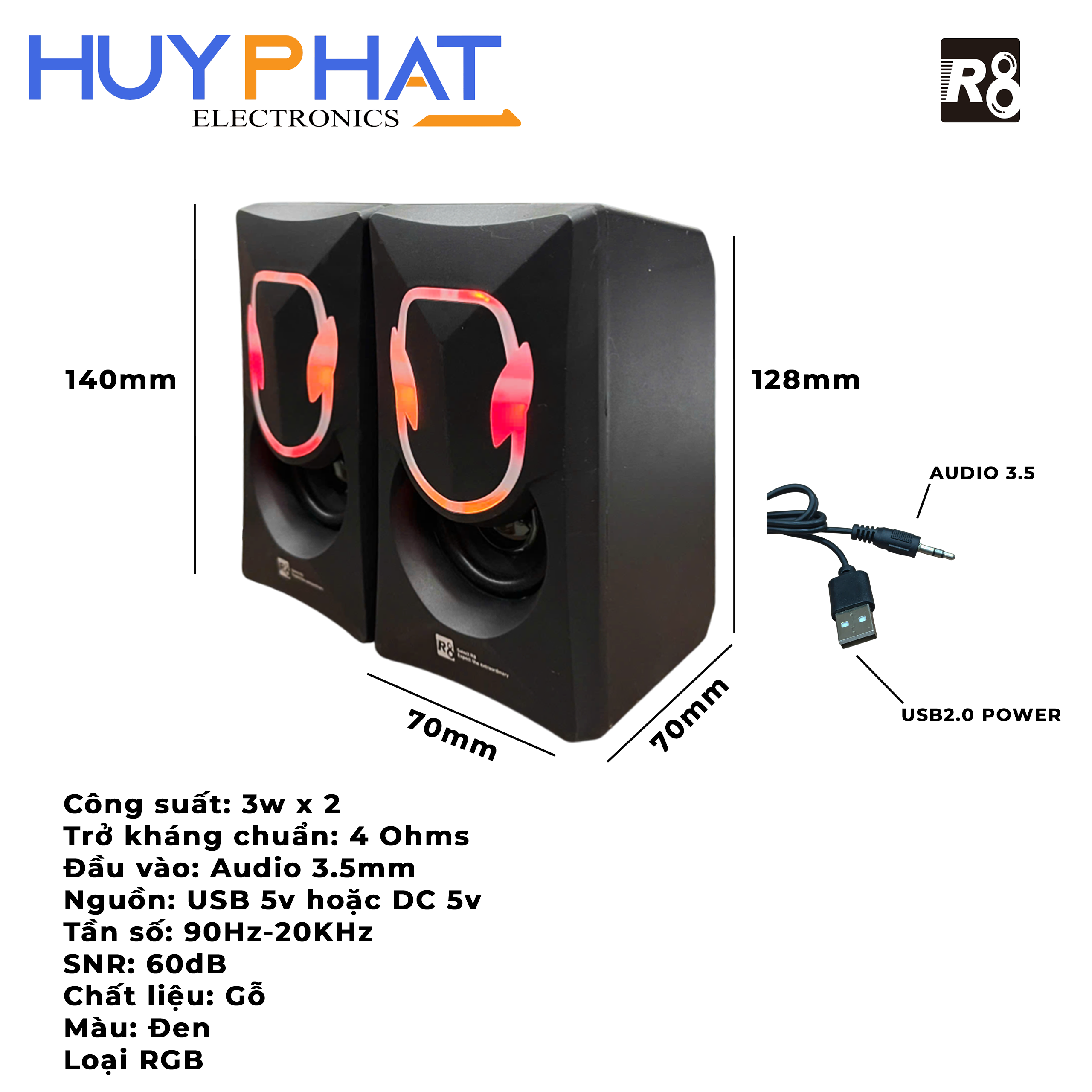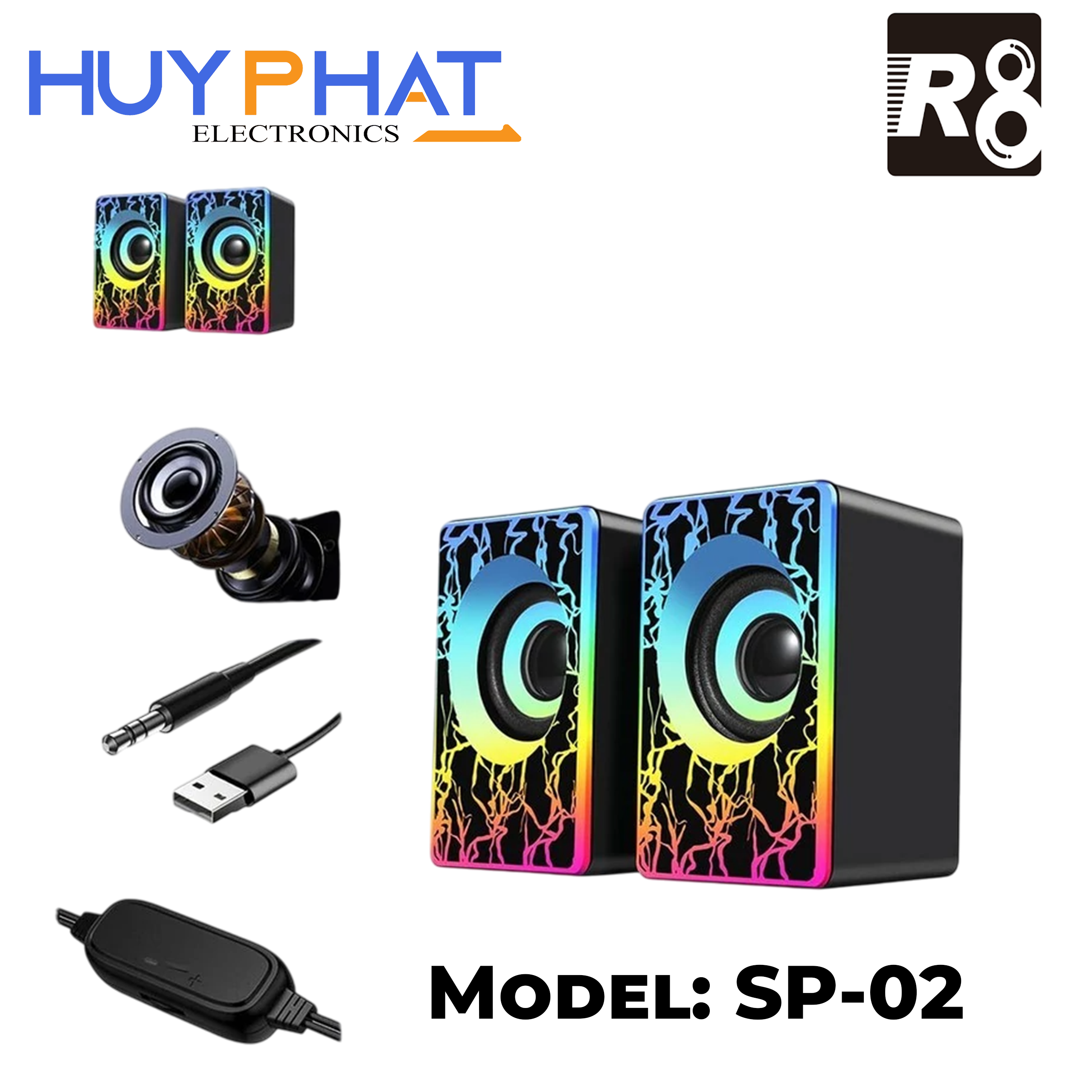 Loa đôi đa phương tiện 2.0 bằng gỗ có RGB công suất 3W x 2 R8 SP-01