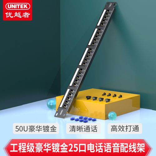 - Patch panel điện thoại UNITEK OT27BK là bảng phân phối 25 cổng chuyên dụng cho hệ thống tổng đài thoại nội bộ.