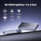 - UNITEK 4K HDMI Splitter giúp nhân đôi tín hiệu từ 1 cổng HDMI đầu vào ra 2 màn hình mà không làm suy giảm chất lượng hình ảnh hay âm thanh.