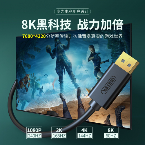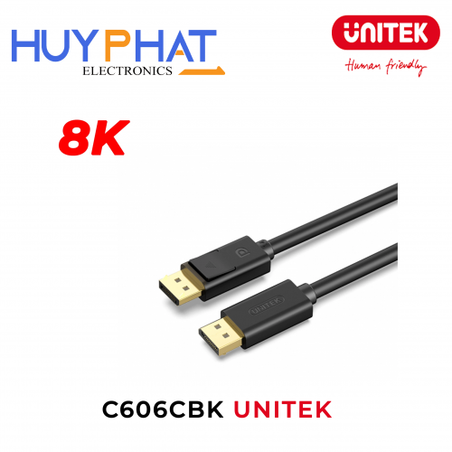 - Cáp DisplayPort UNITEK chuẩn 1.4, hỗ trợ độ phân giải siêu nét lên đến 8K@60Hz, cho hình ảnh sống động và sắc nét.