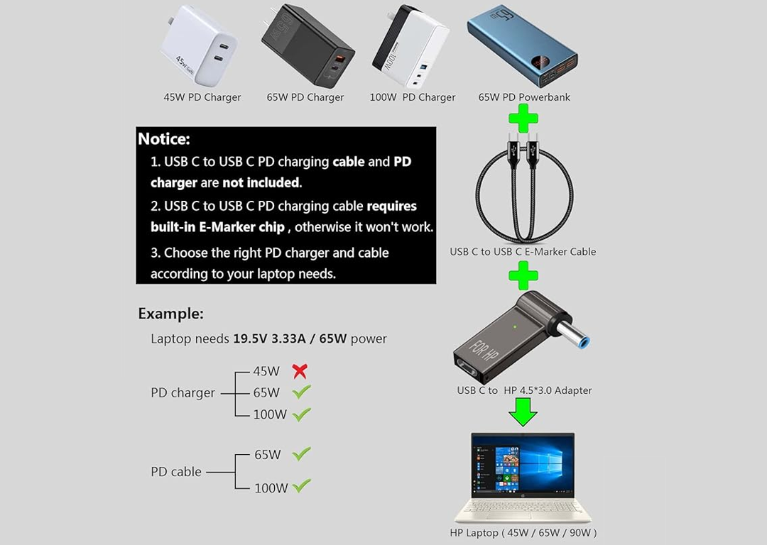 Đầu chuyển đổi USB Type C sang Jack DC sạc laptop Dell , HP CF/DC4530HP-100W-XHJ DC4530DELL-100W-XHJ