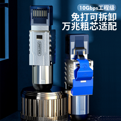 - Đầu mạng UNITEK OT48NI/OT49NI hỗ trợ chuẩn Cat7 và Cat8, phù hợp cho các hệ thống mạng tốc độ cao lên đến 10Gbps.