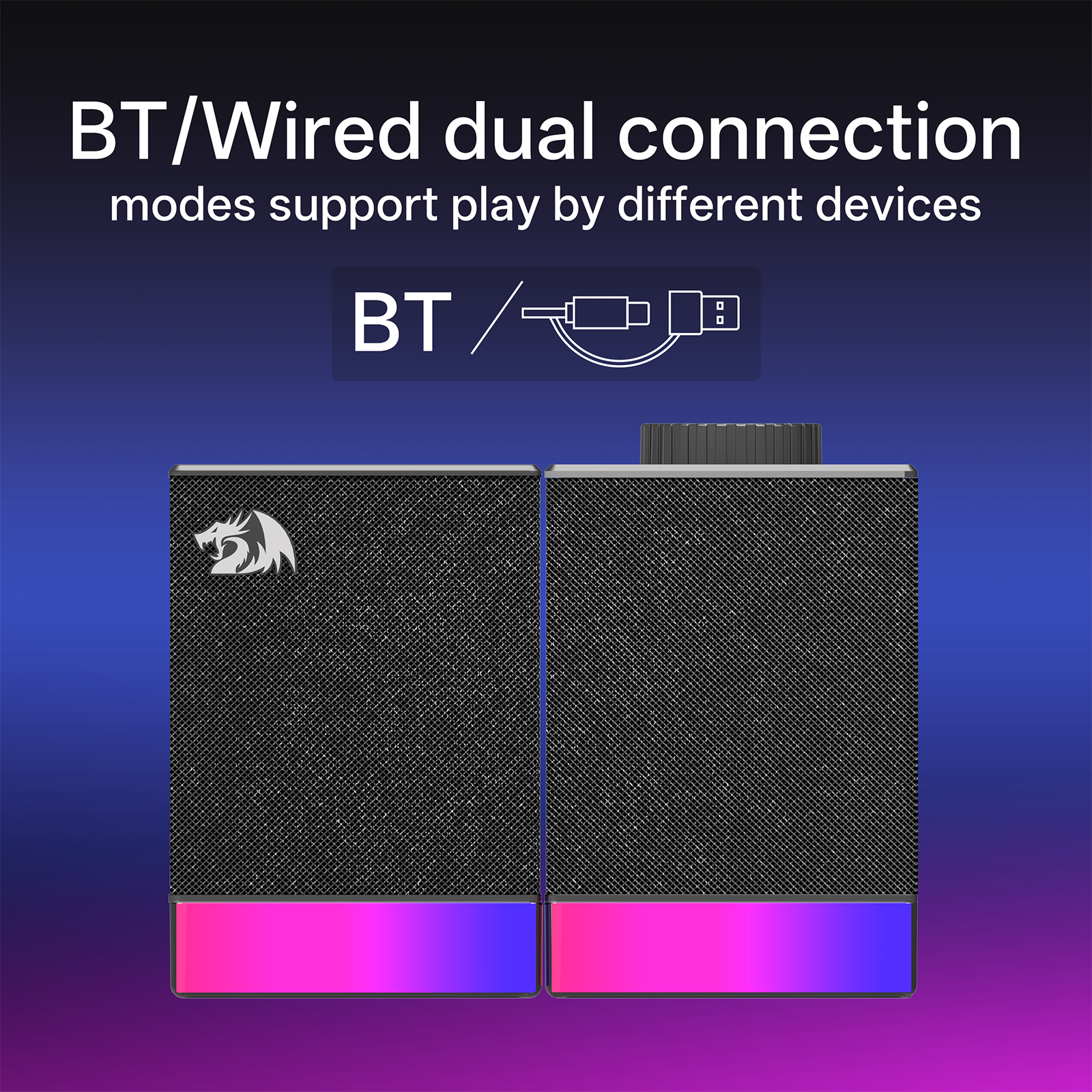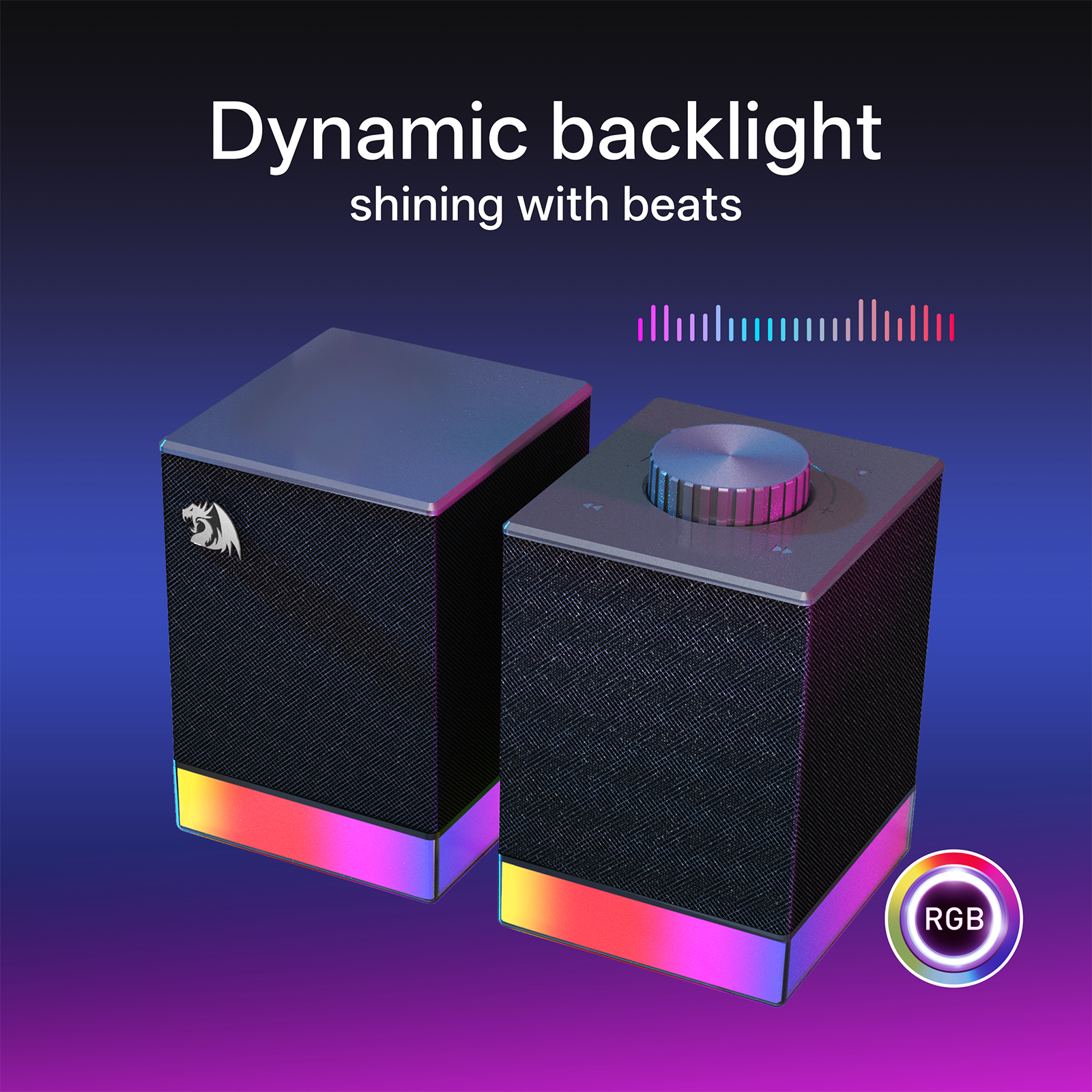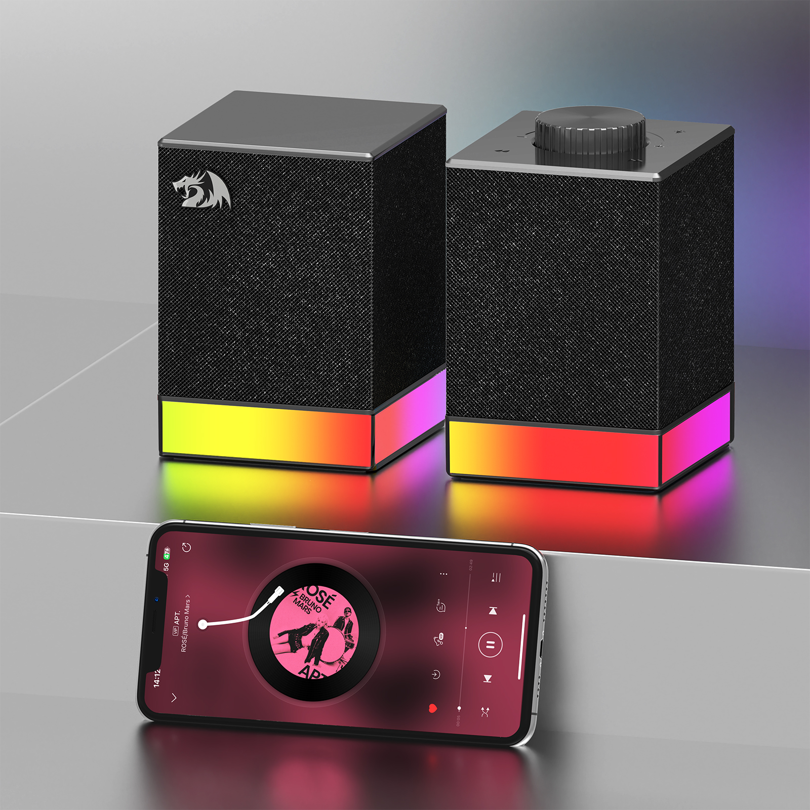 | Thiết kế | Hình khối vuông gọn gàng, logo Redragon, dải đèn LED RGB dưới loa |