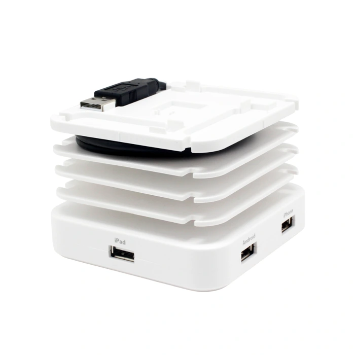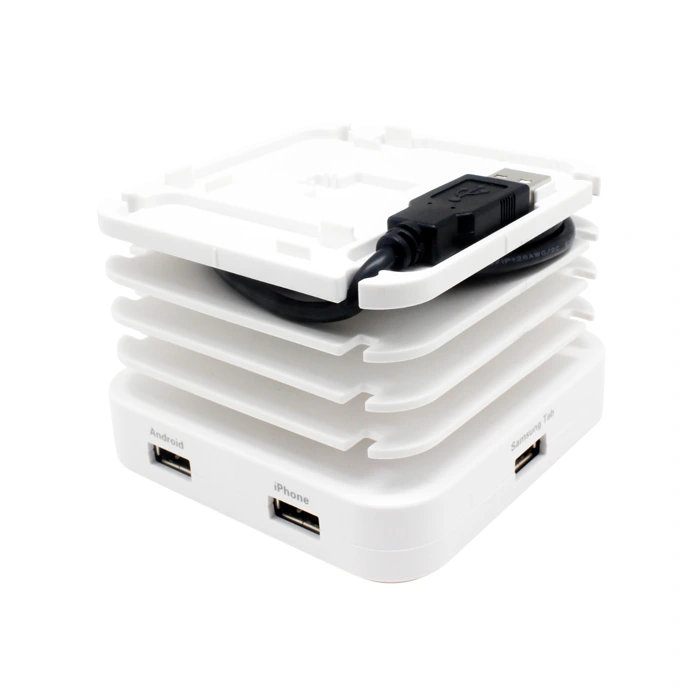 - Đế sạc 4 cổng USB tương thích với tất cả điện thoại, máy tính bảng và các thiết bị hỗ trợ sạc qua USB.