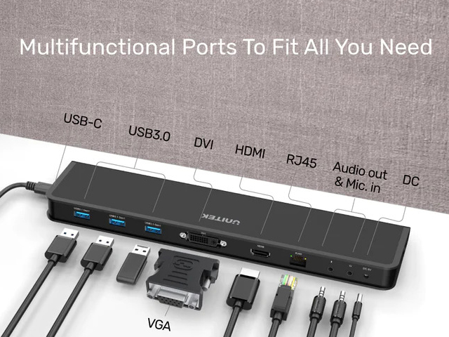 UHub S7 chia 5 trong 1 Type-C -> Type-C + USB3.0 + DVI + HDMI + Audio Unitek D001A